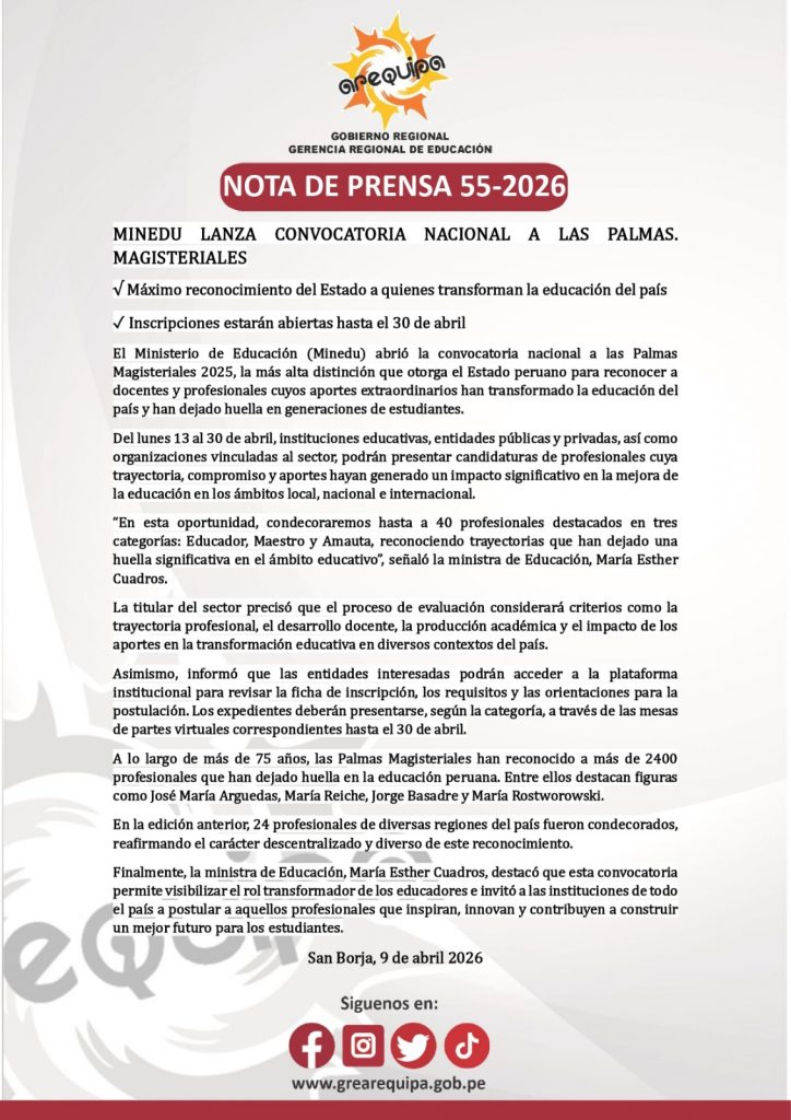 NOTA DE PRENSA 55-2026 PALMAS MAGISTERIALES