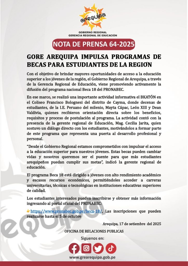 NOTA DE PRENSA 64-2025 BECAS PARA ESTUDIANTES