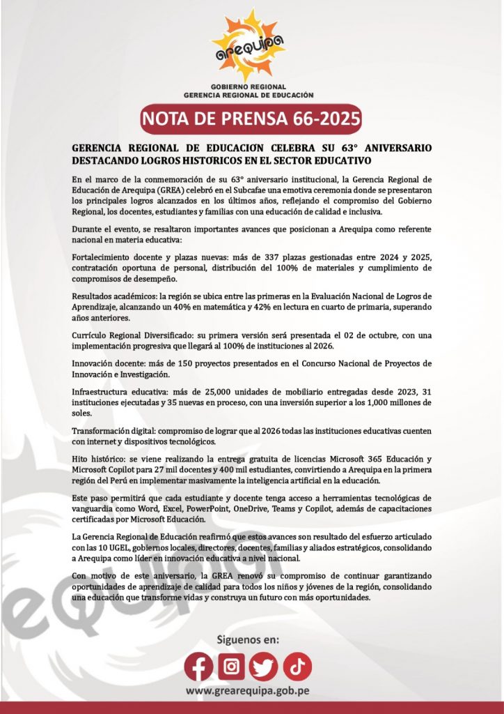 NOTA DE PRENSA 66-2025 63° ANIVERSARIO