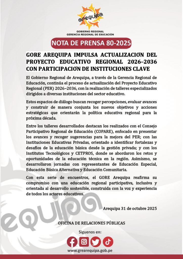 NOTA DE PRENSA 80-2025 PROYECTO EDUCATIVO REGIONAL 2026-2036