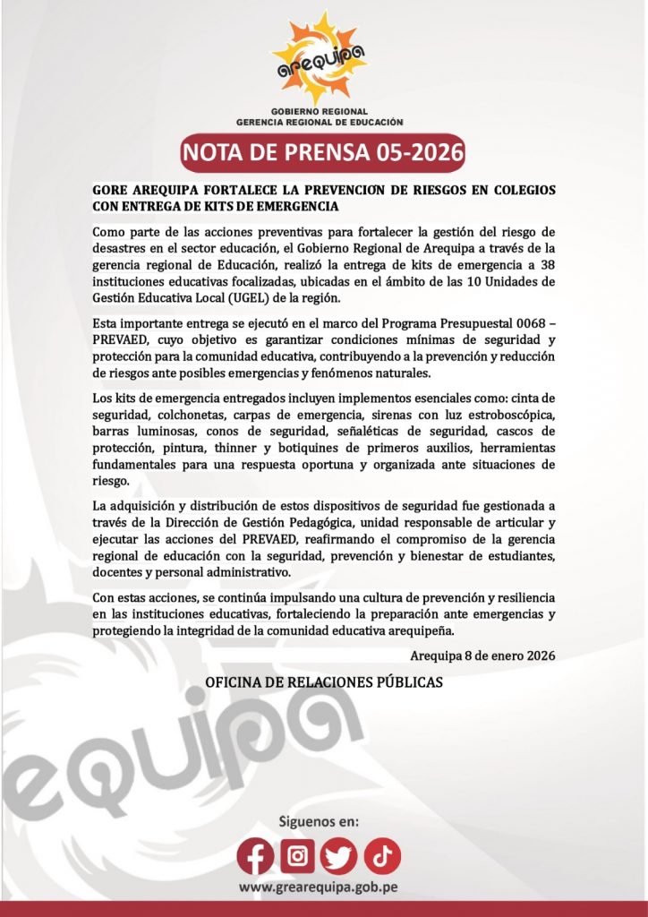 NOTA DE PRENSA 05-20256ENTREGA DE KITS DE EMERGENCIAS