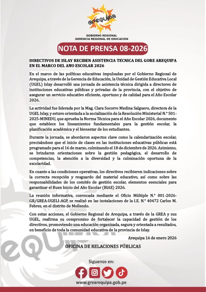 NOTA DE PRENSA 08-2026 ASISTENCIA TÉCNICA