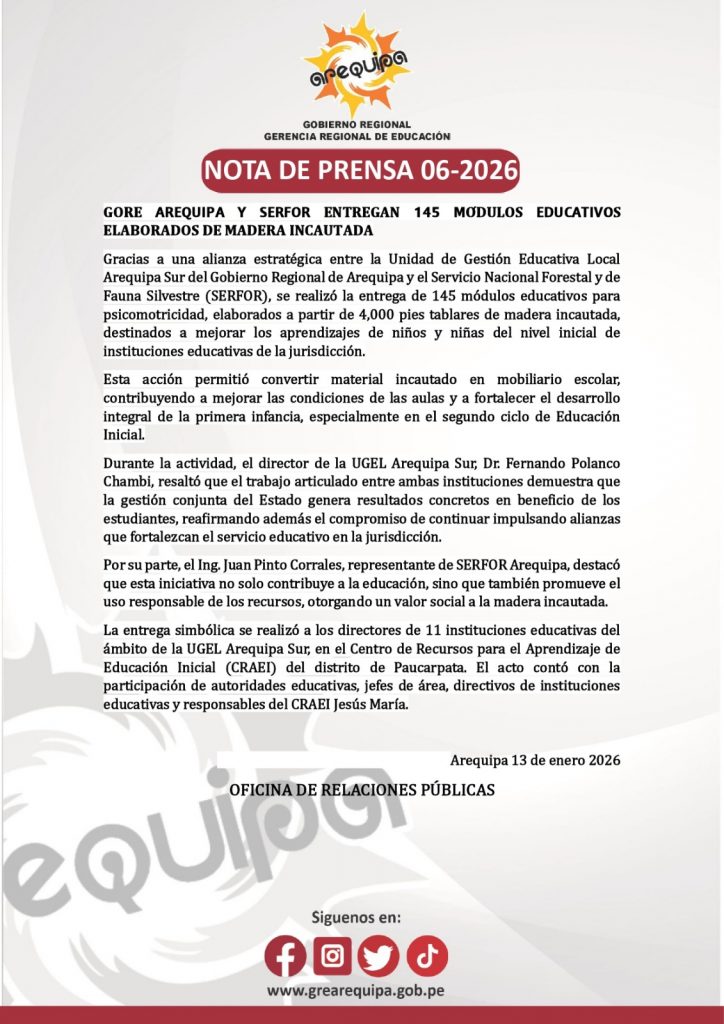 NOTA DE PRENSA 06-2026 ENTREGA DE MÓDULOS EDUCACTIVOS
