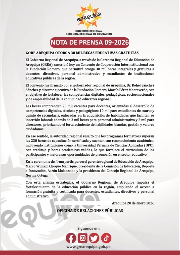 NOTA DE PRENSA 09-2026 38 000 BECAS GRATUITAS