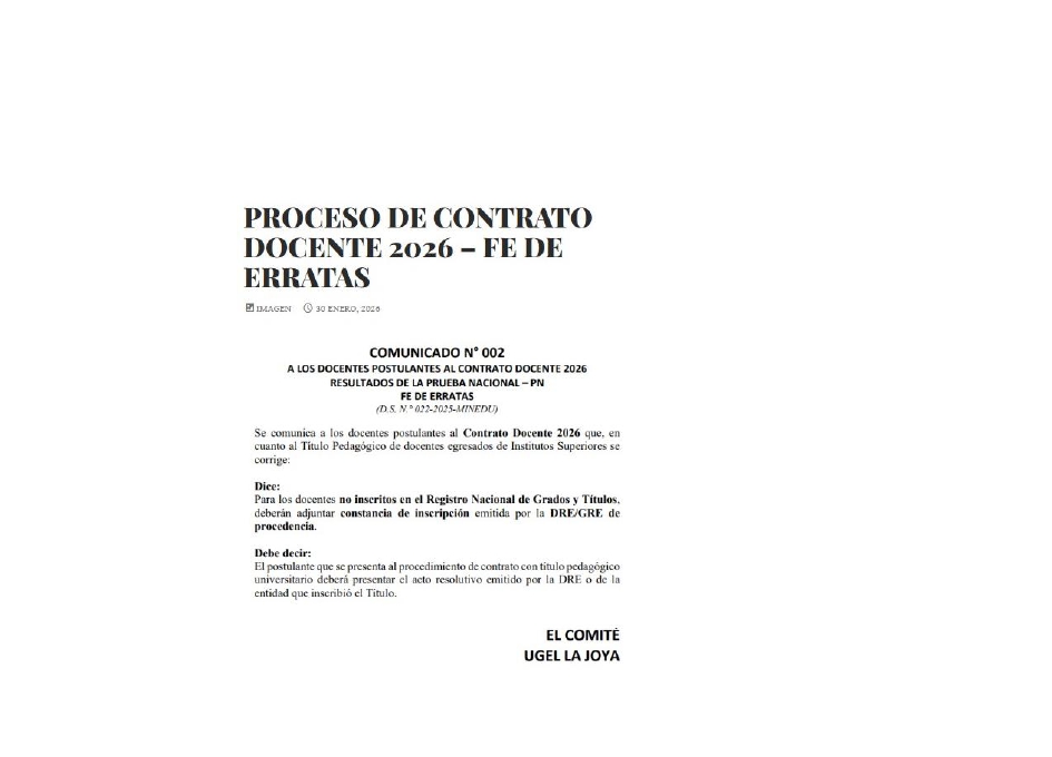 PROCESO DE CONTRATO DOCENTE 2026