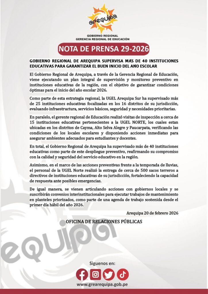 NOTA DE PRENSA 29-2026 BUEN INICIO DEL AÑO ESCOLAR