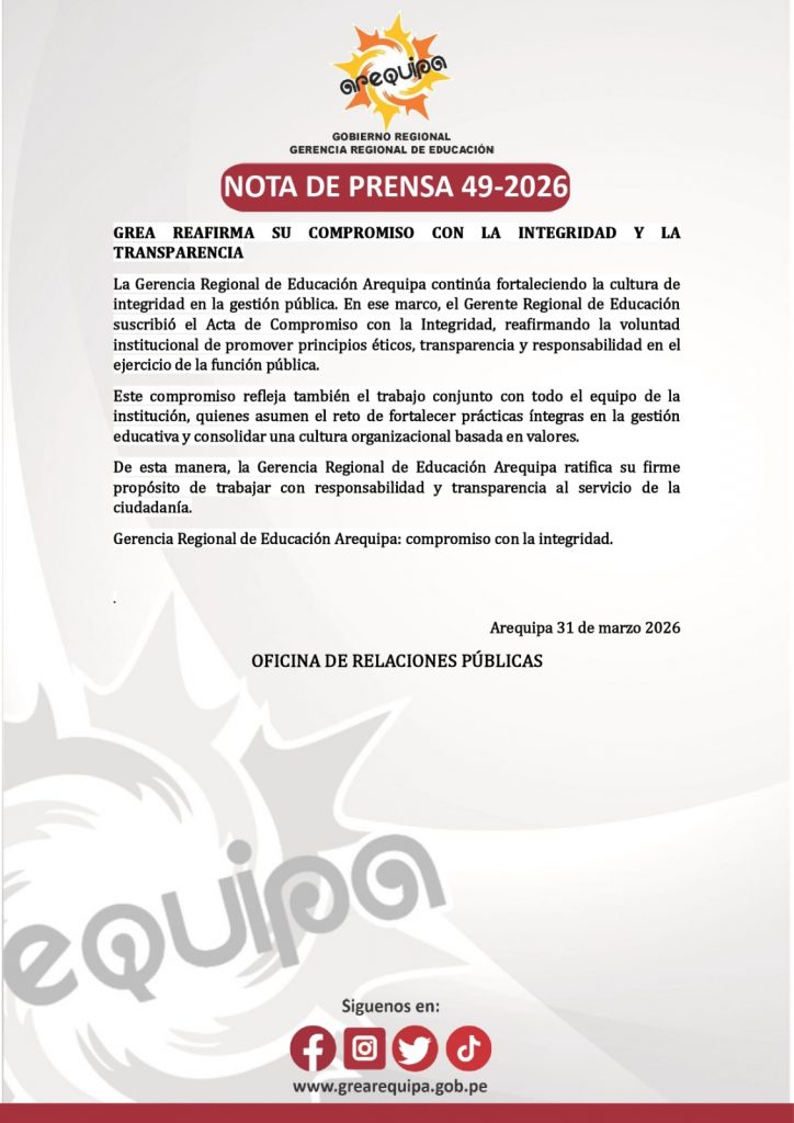 NOTA DE PRENSA 49-2026 INTEGRIDAD Y TRANSPARENCIA